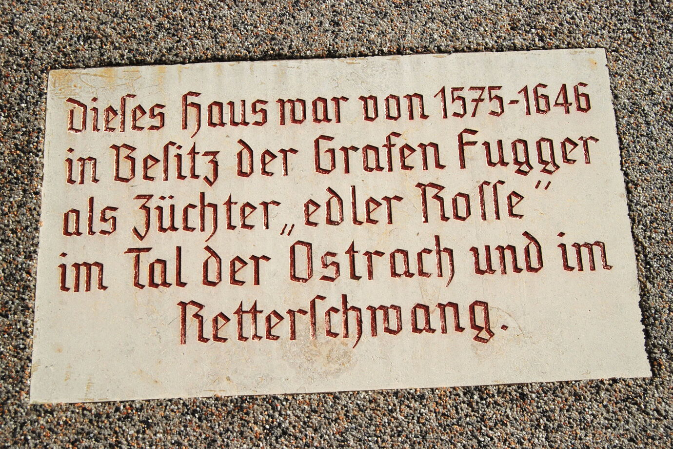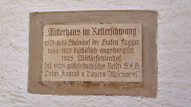 Auf der Alpe Mitterhaus im Retterschwangtal sömmerten die Fugger edle Rösser. Die Gedenktafel an der Alpe erinnert daran. Die Sennalpe Mitterhaus bewirtet Wanderer mit dem dort hergestellten Bergkäse.