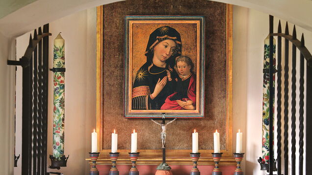 Das kostbare Mariengemälde von Hans Holbein d.Ä. in der Bad Oberdorfer Kirche St. Jodokus schenkten die Fugger dem Bischof von Augsburg für die Hauskapelle in seinem Jagdschloss – das heutige Rathaus.